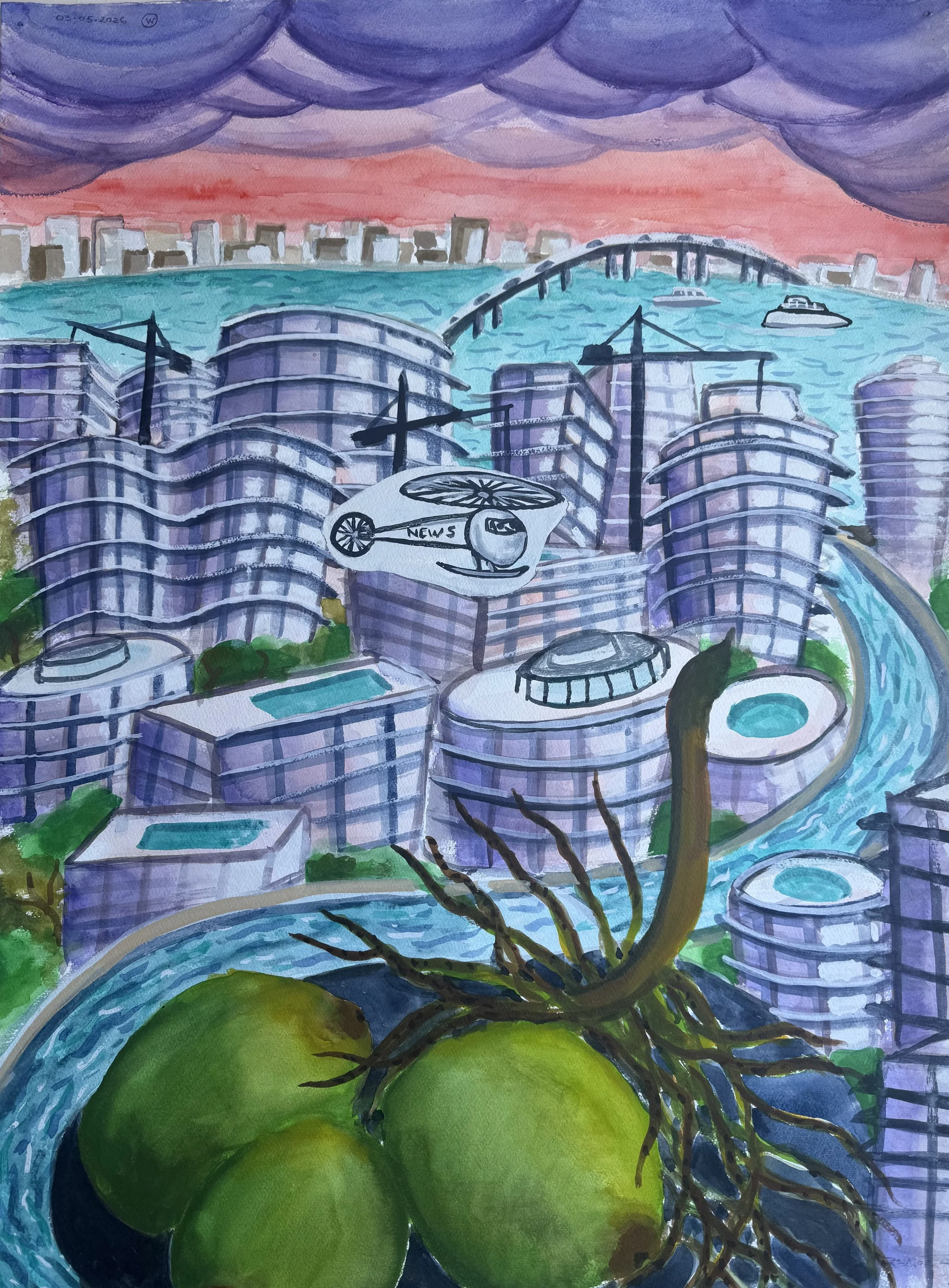 Gouache Watercolor on 300lb. archival paper. H30” x W22”.