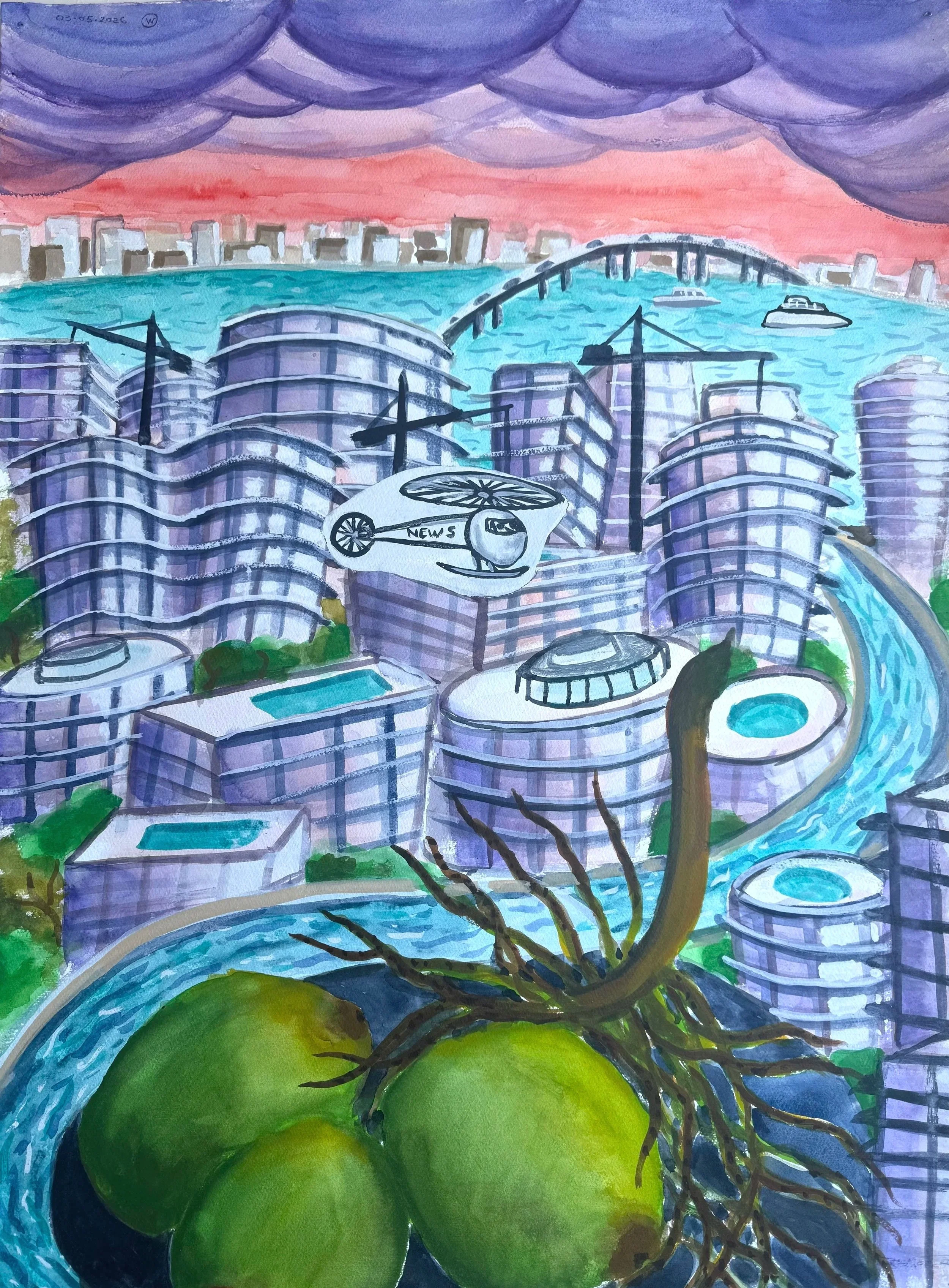 Gouache Watercolor on archival paper W22” x H30”.